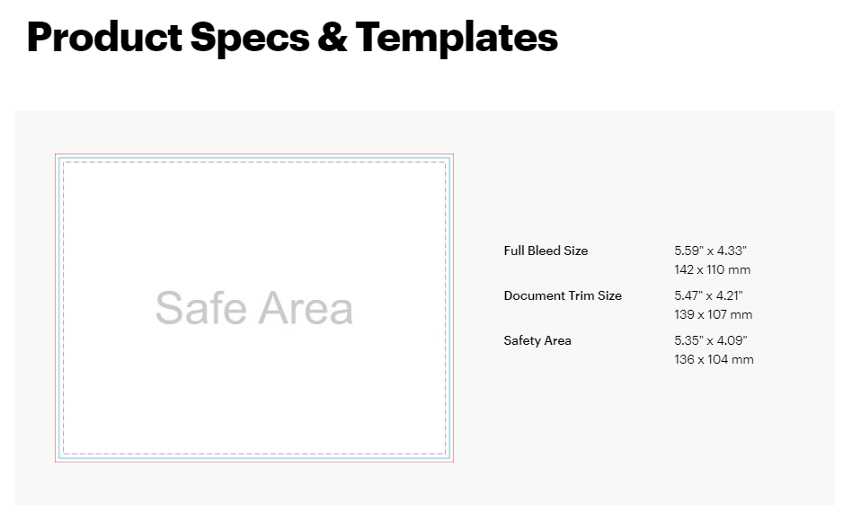 To avoid white edges, extend your design to the full bleed size – but keep text and images within the safety area.